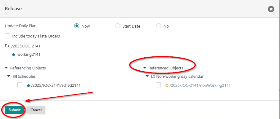 When an invalid draft object such as a calendar is referenced for example by a schedule that has already been released and that is re-released, then